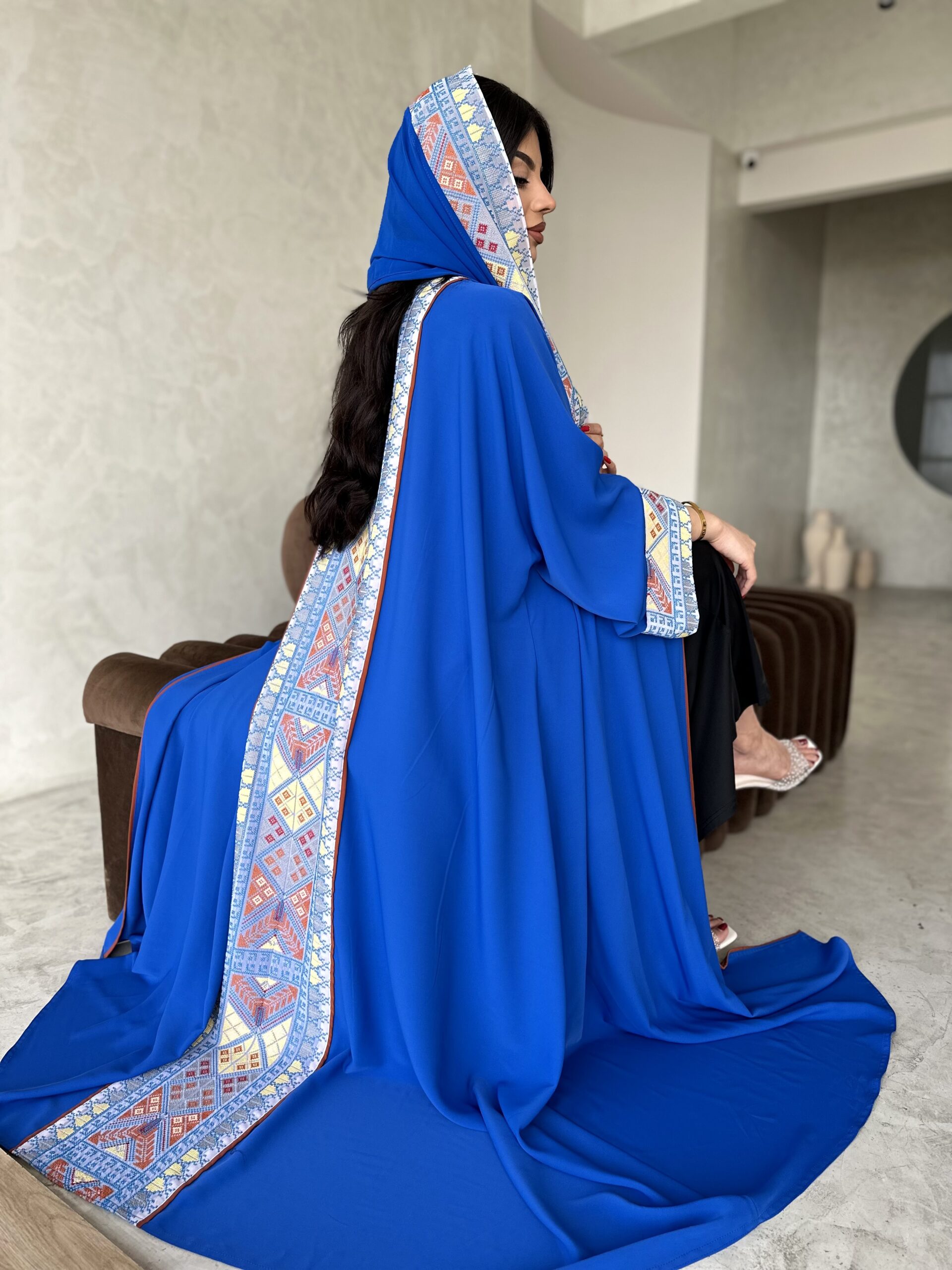 مزج قماش اسود مع بني نود بالاضافة لتطريز مورد