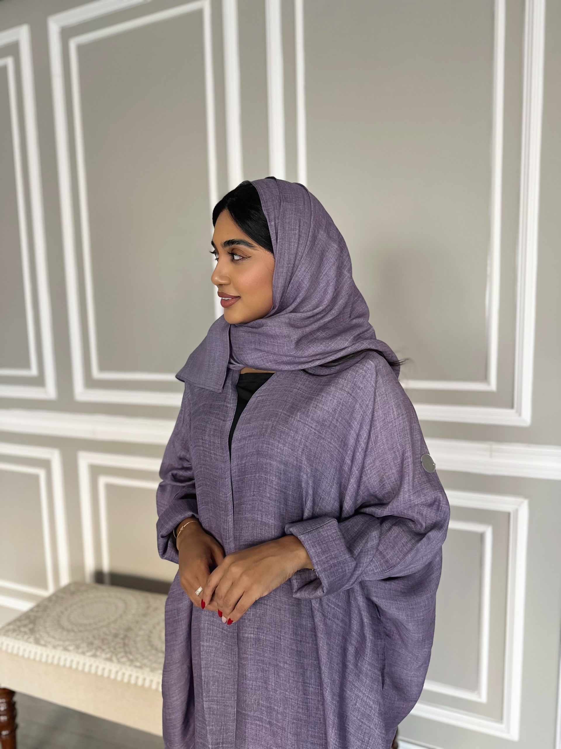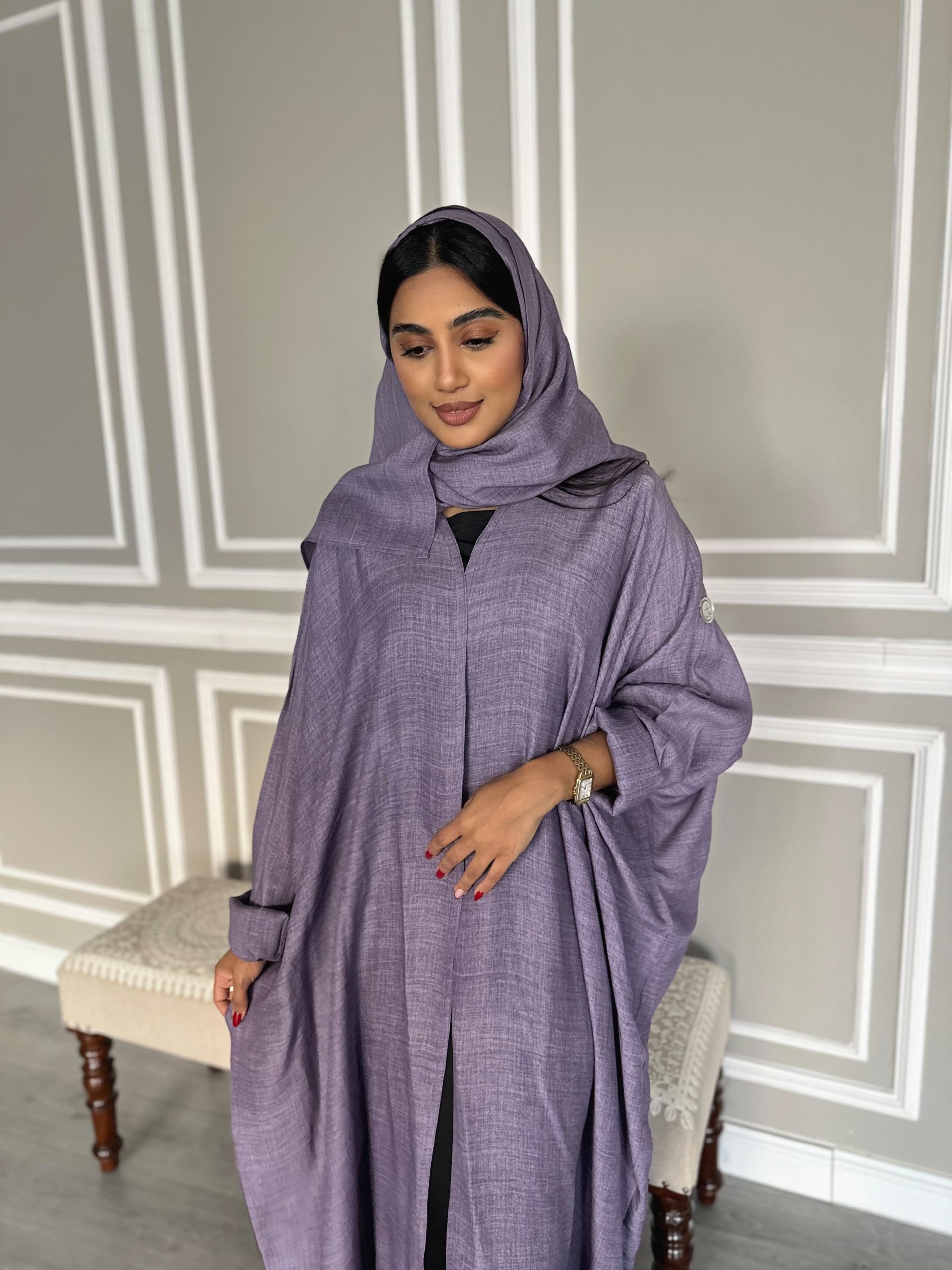 – قماش العبايه لنن ناعم + الشيله بنفس القماش