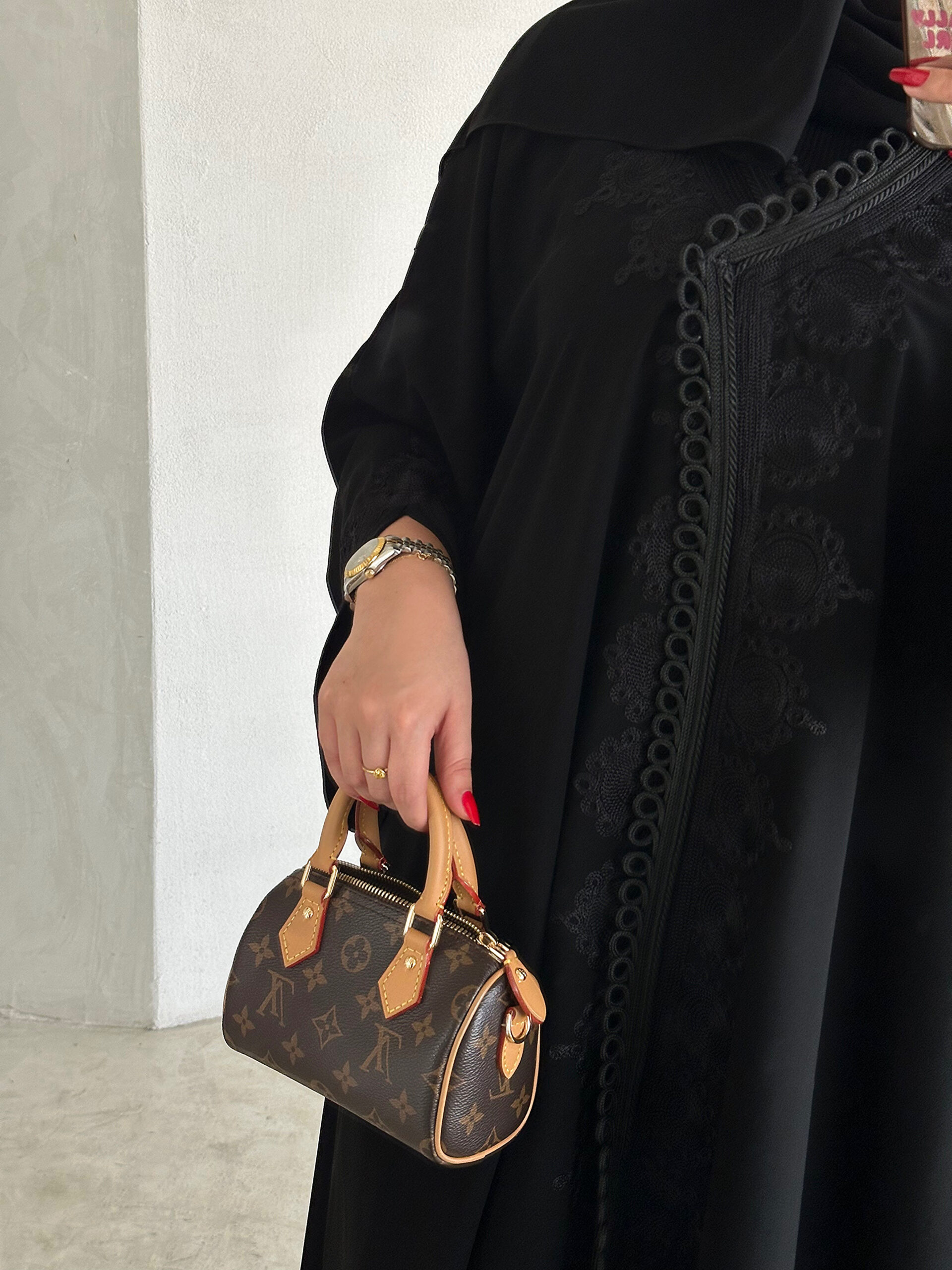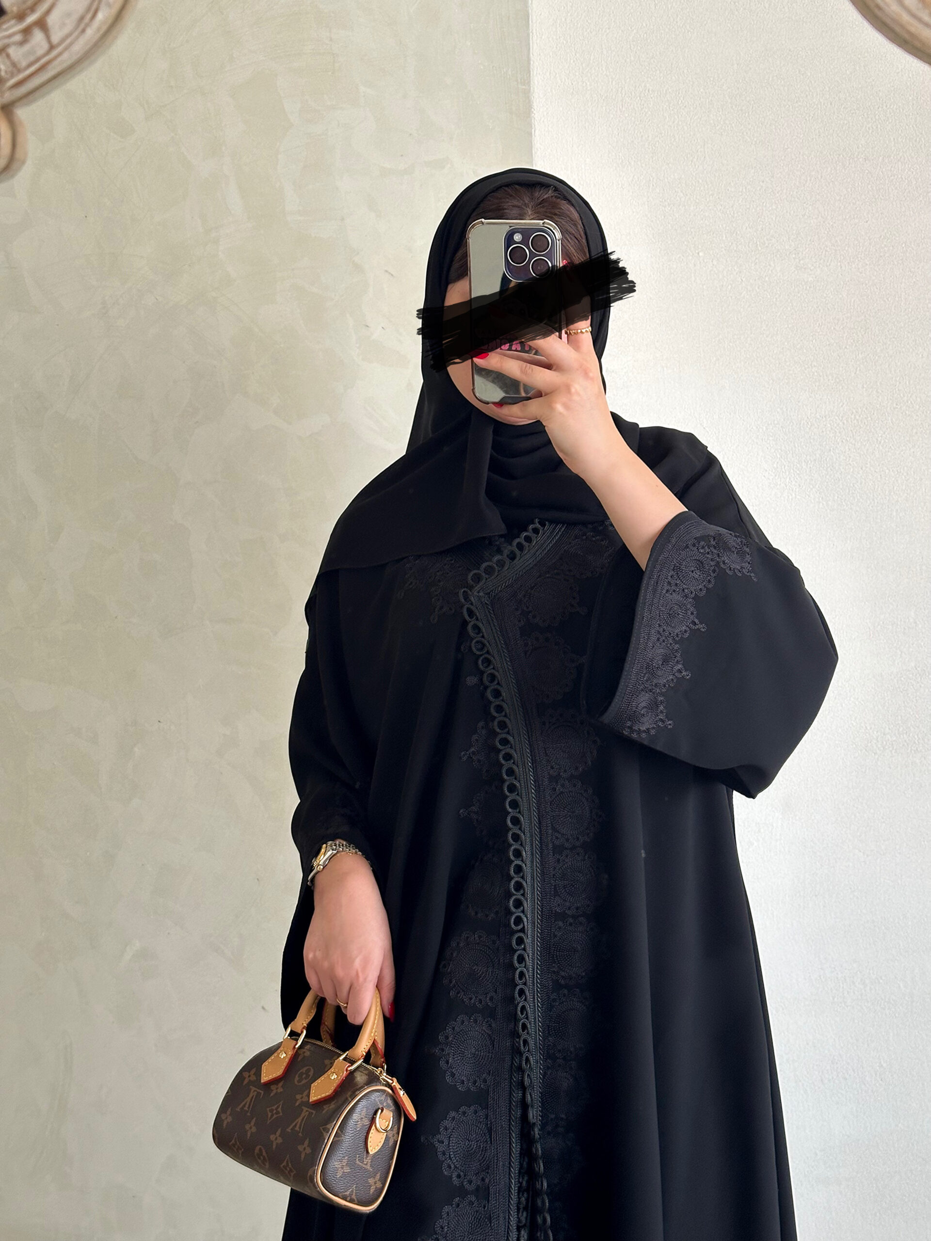 عبايه سوداء صيفيه بتطريز بنفسجي و ابيض
