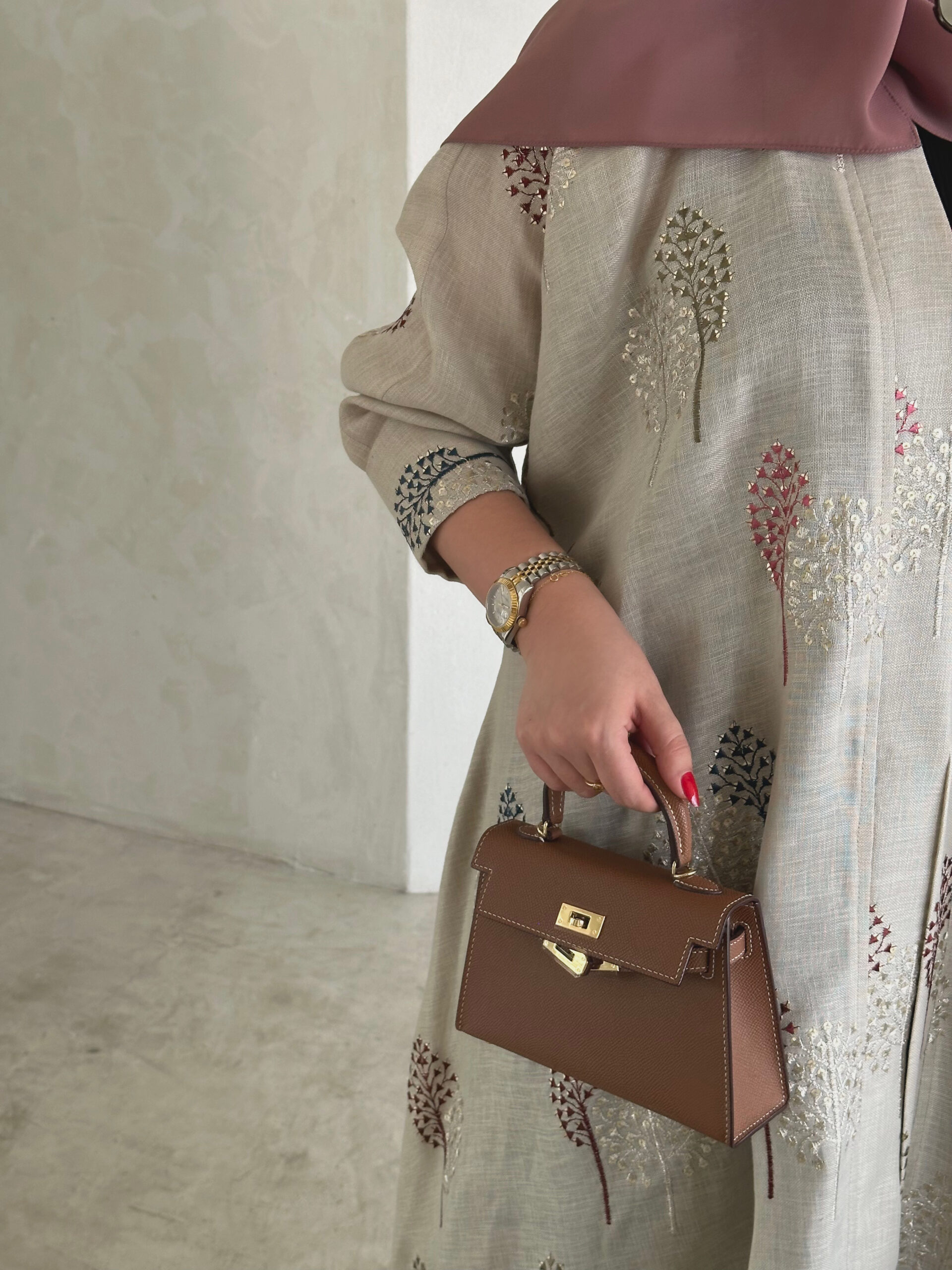 عباية شيفون طبقات مع الشك الذهبي بالاطراف