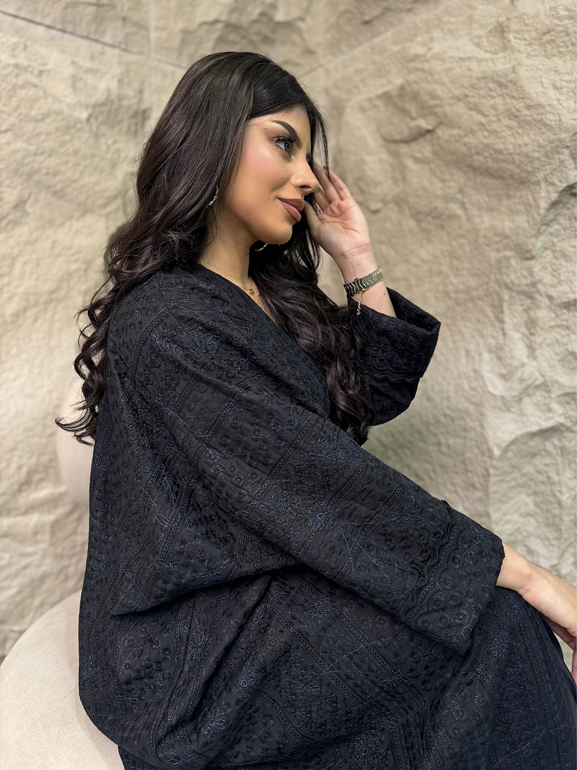 – قماش العبايه مخروزه اسود صيفي مطرز بالكامل