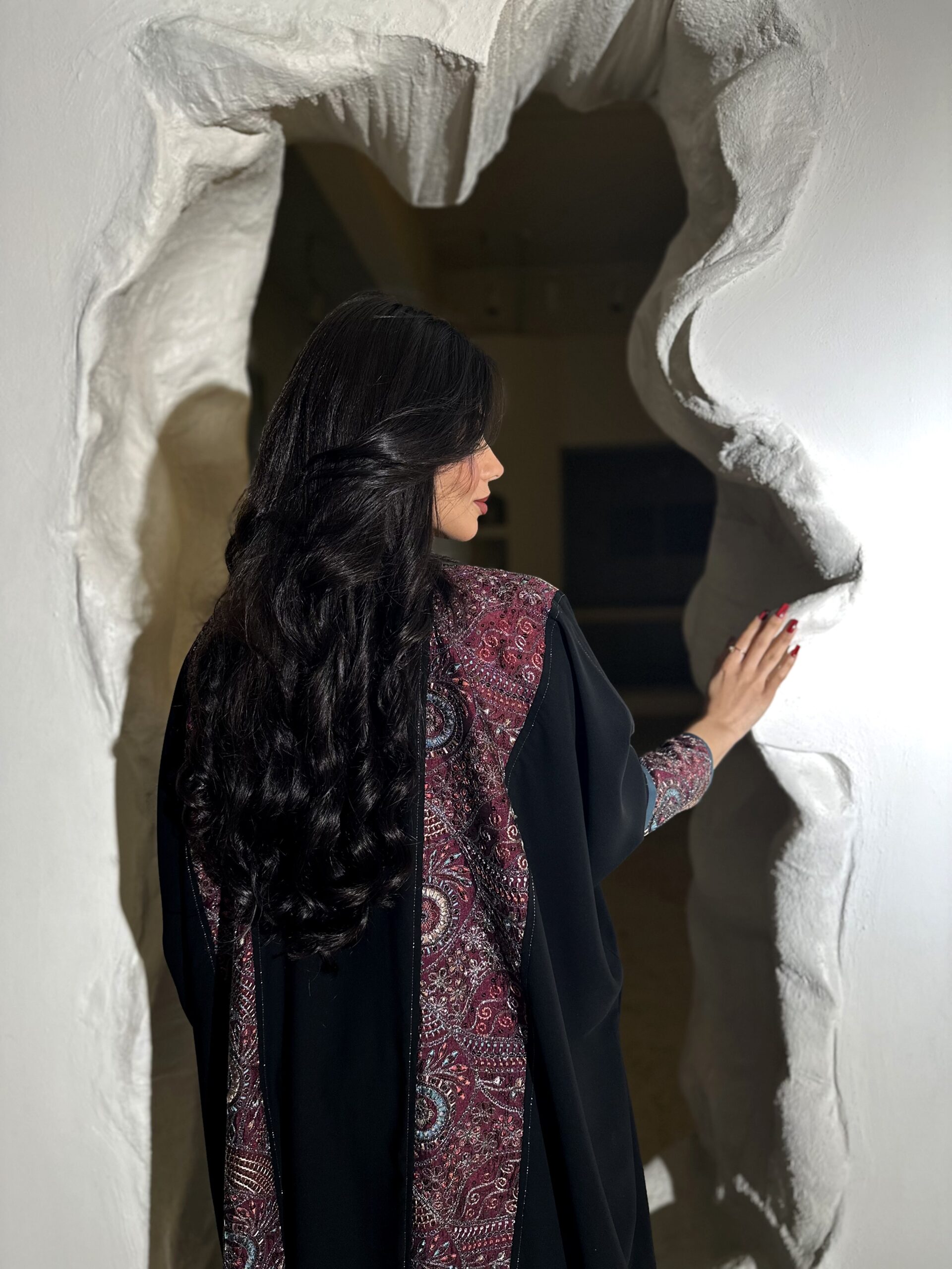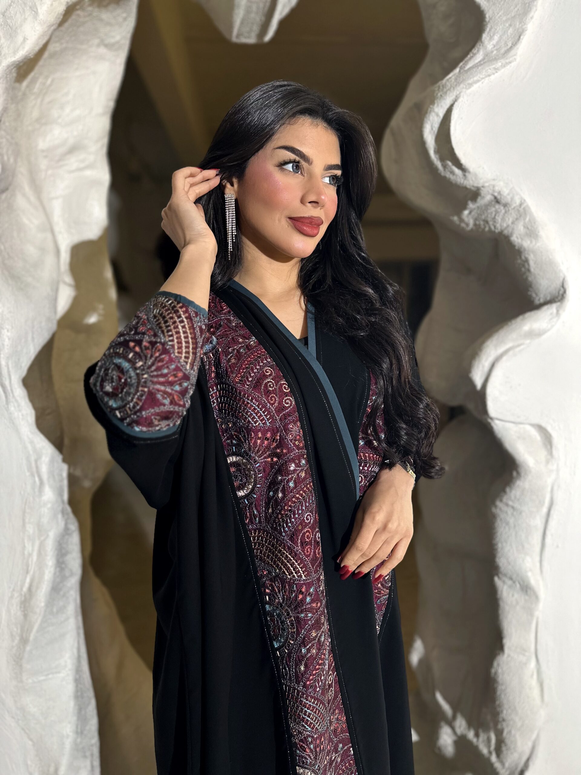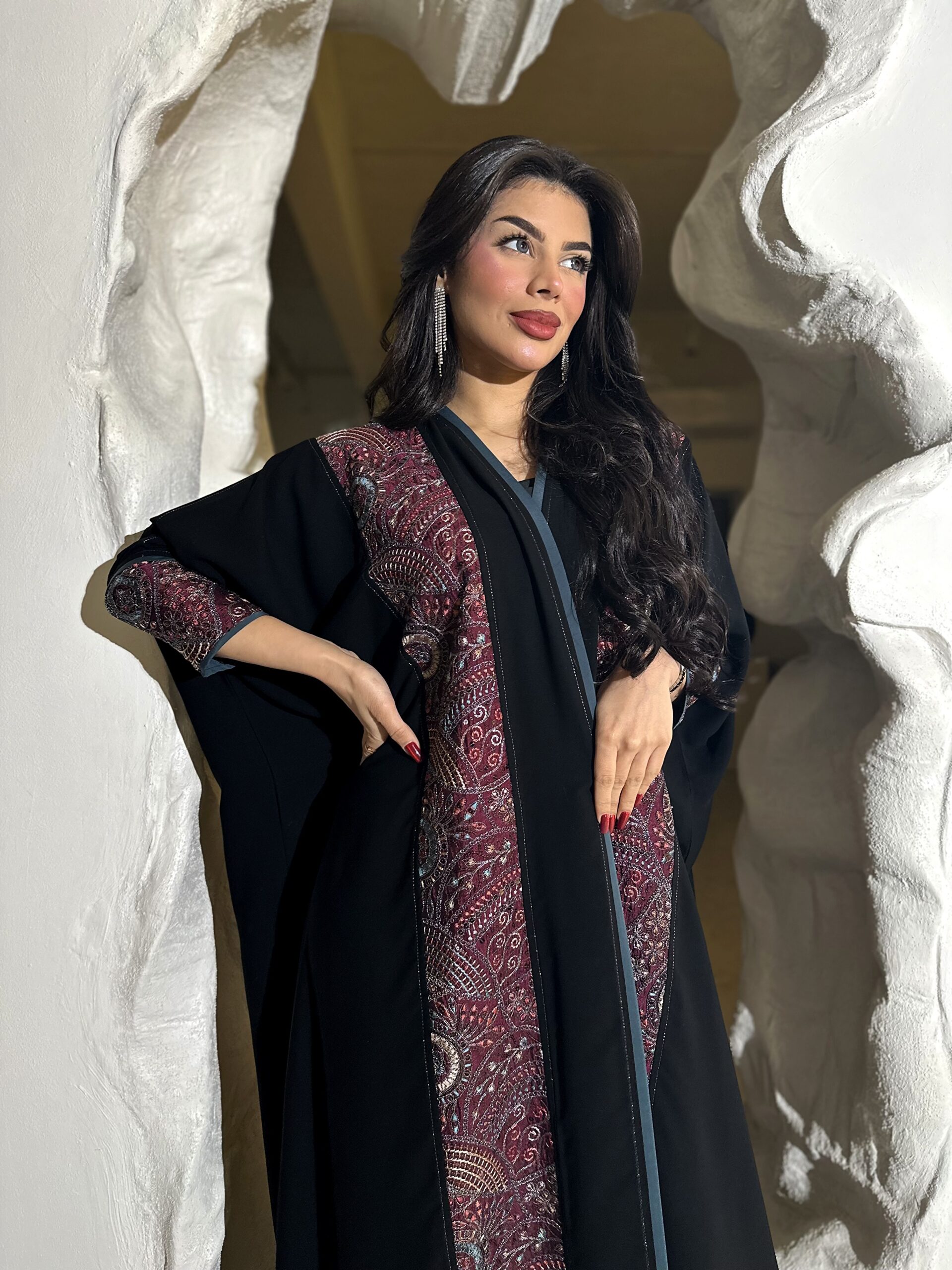 عبايه سوداء صيفيه بتطريز بنفسجي و ابيض