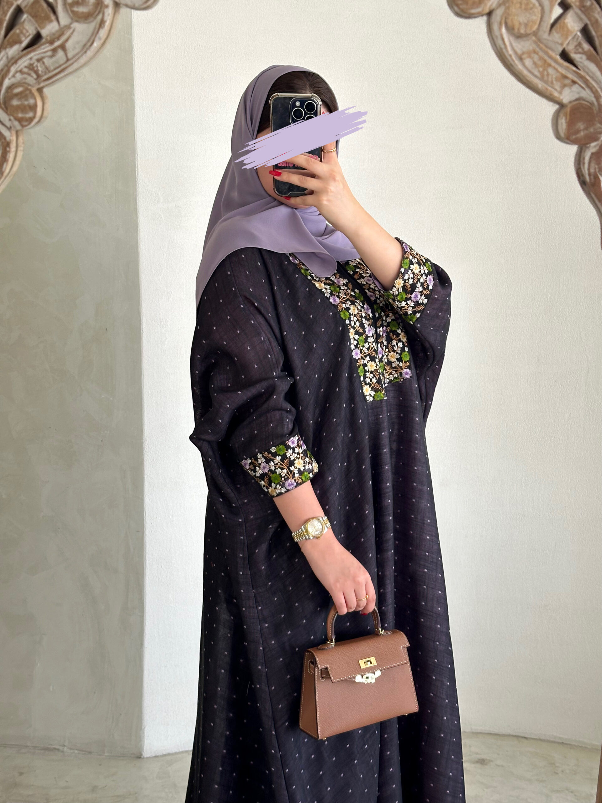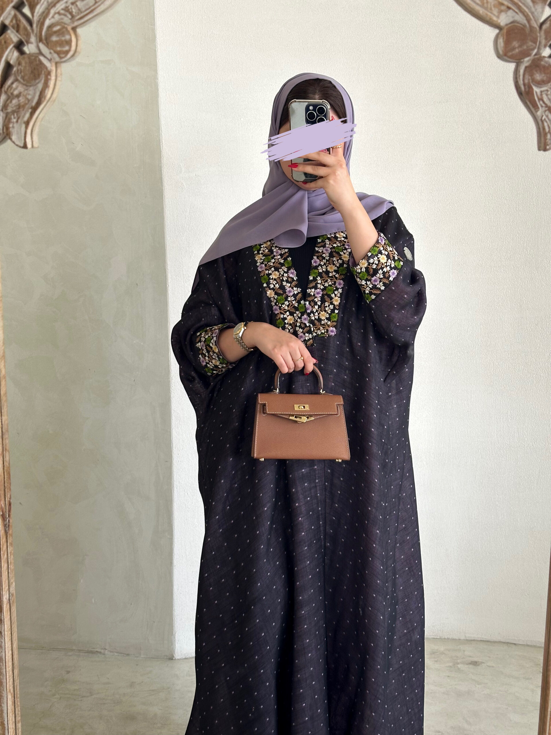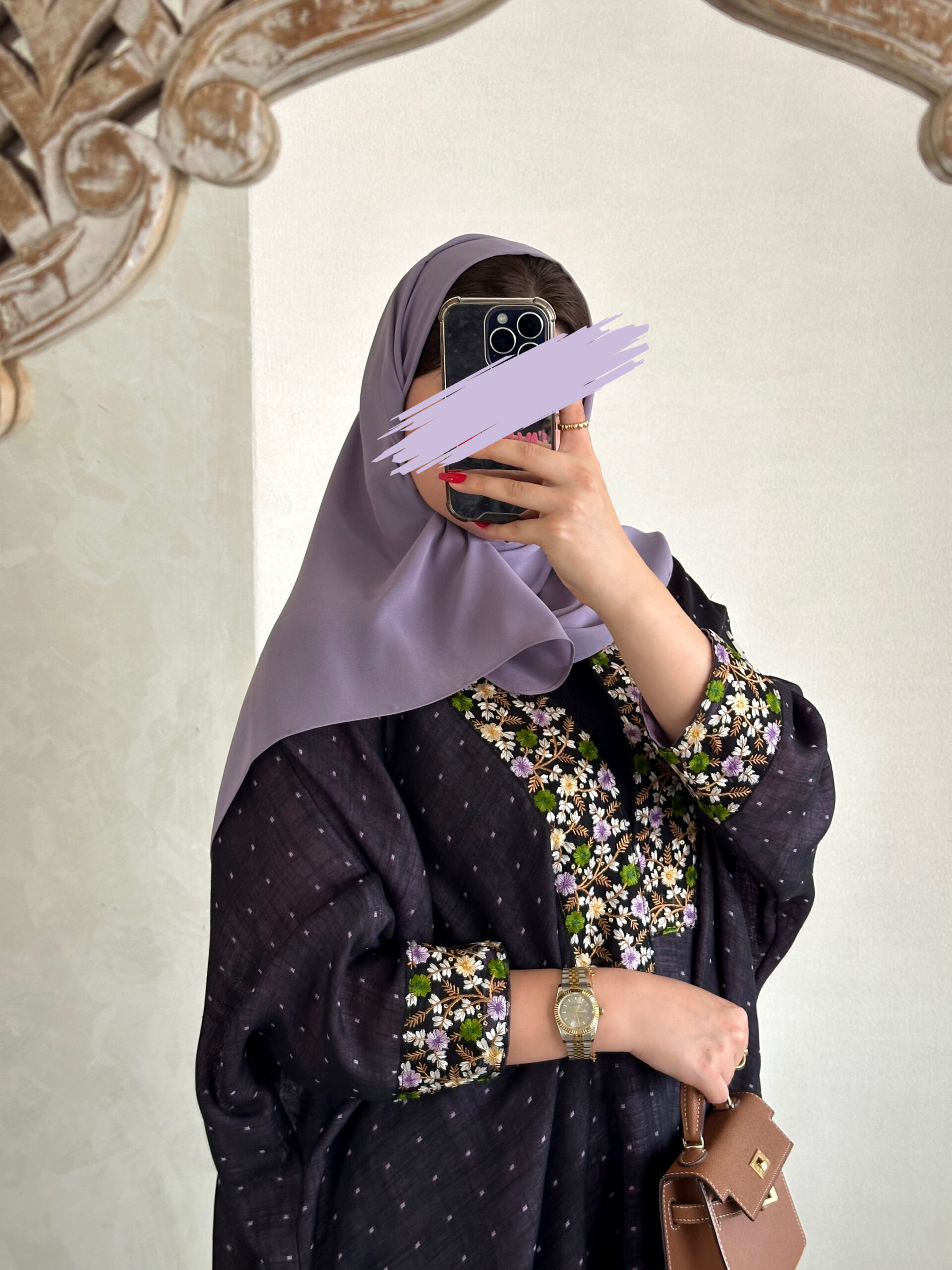 عبايه سوداء صيفيه مع تطريز بدرجات صيفيه