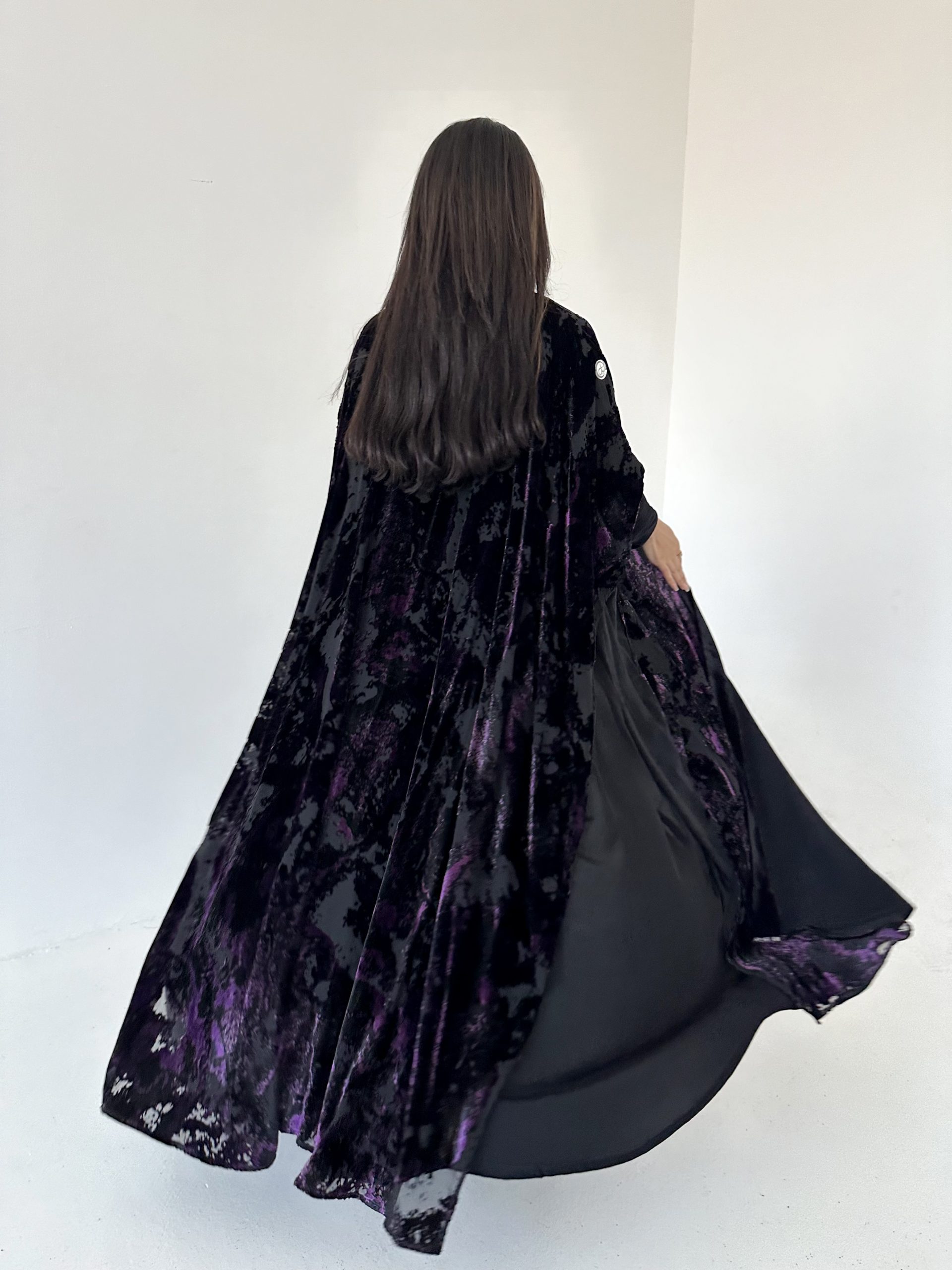 – قماش العبايه كريب ناعم فوقها شيفون بمخمل منقش