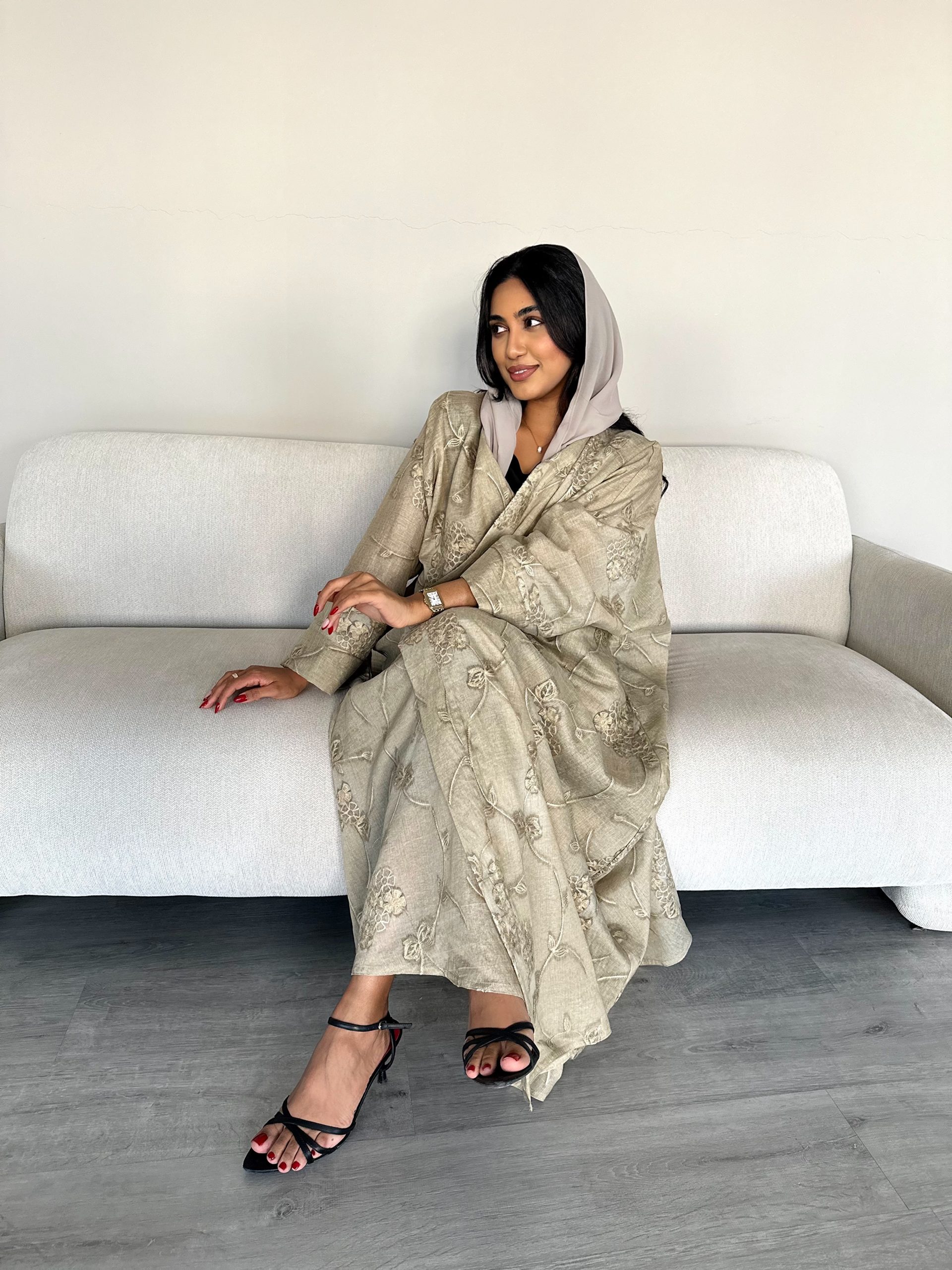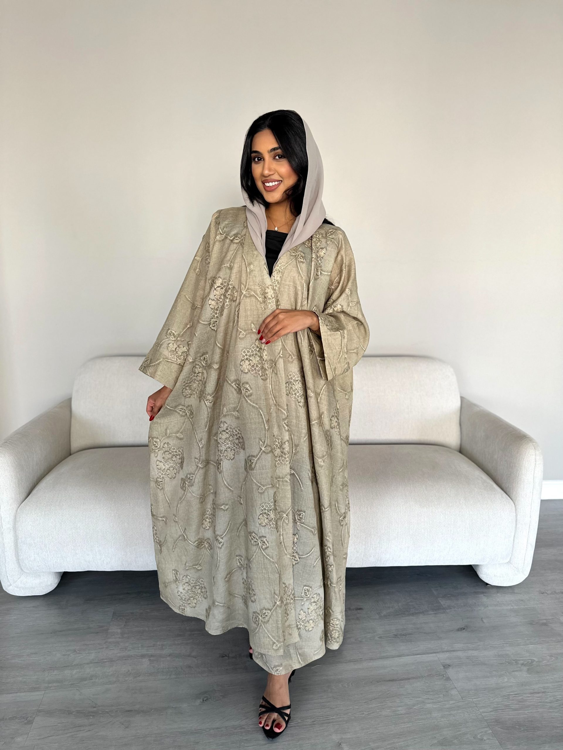 عبايه مخمل مع اكمام تور مطرزه بالمخمل